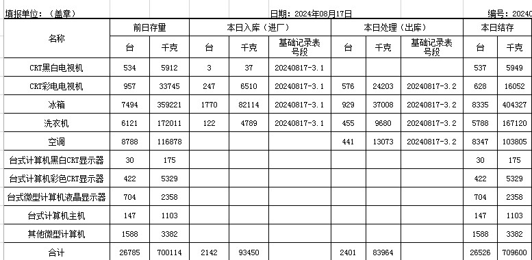 2024.08.17回收拆解統(tǒng)計(jì)表
