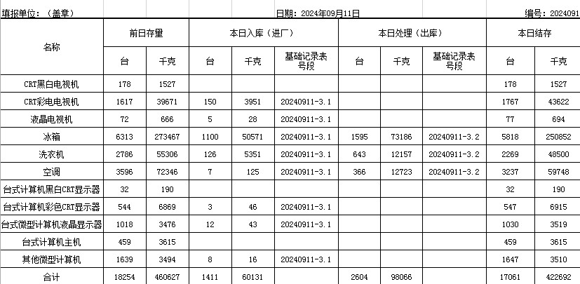 2024.09.11回收拆解統(tǒng)計(jì)表