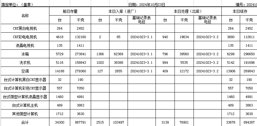 2024.10.23回收拆解統(tǒng)計(jì)表