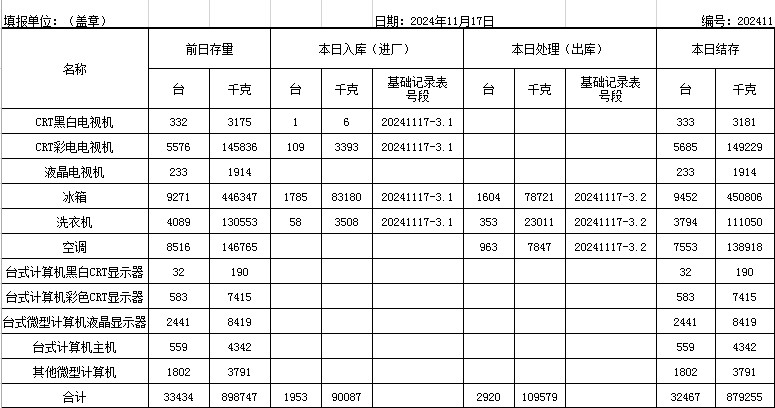 2024.11.17回收拆解統(tǒng)計(jì)表