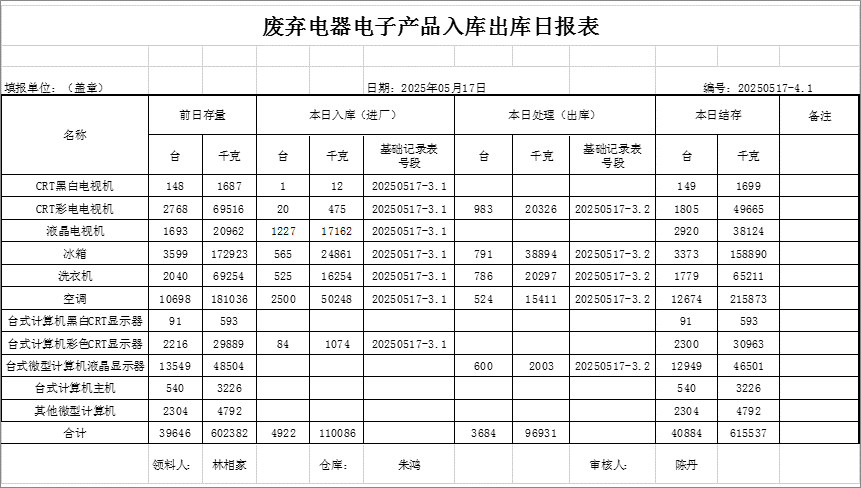 2025.05.17回收拆解統(tǒng)計(jì)表