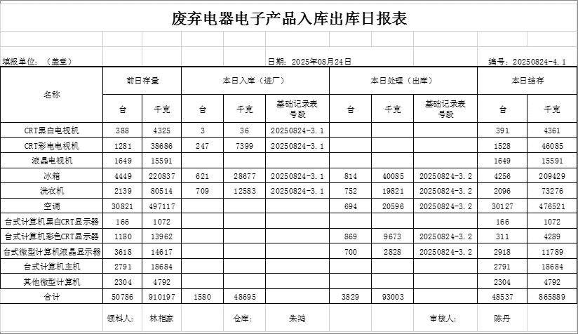 2025.08.24回收拆解統(tǒng)計(jì)表