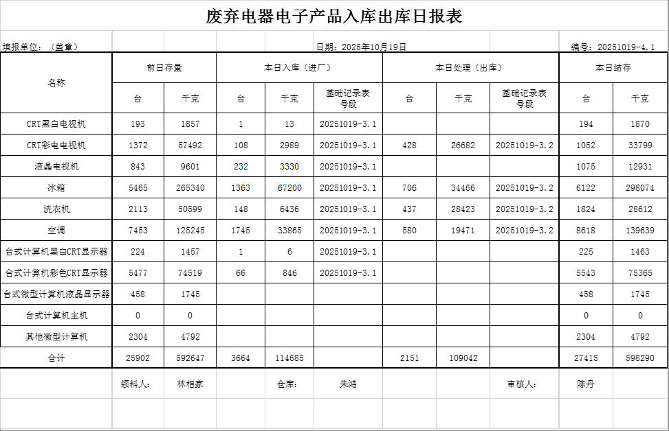 2025.10.19回收拆解統(tǒng)計(jì)表