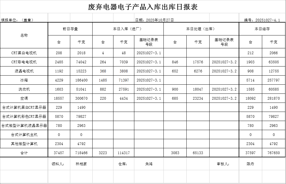 2025.10.27回收拆解統(tǒng)計(jì)表