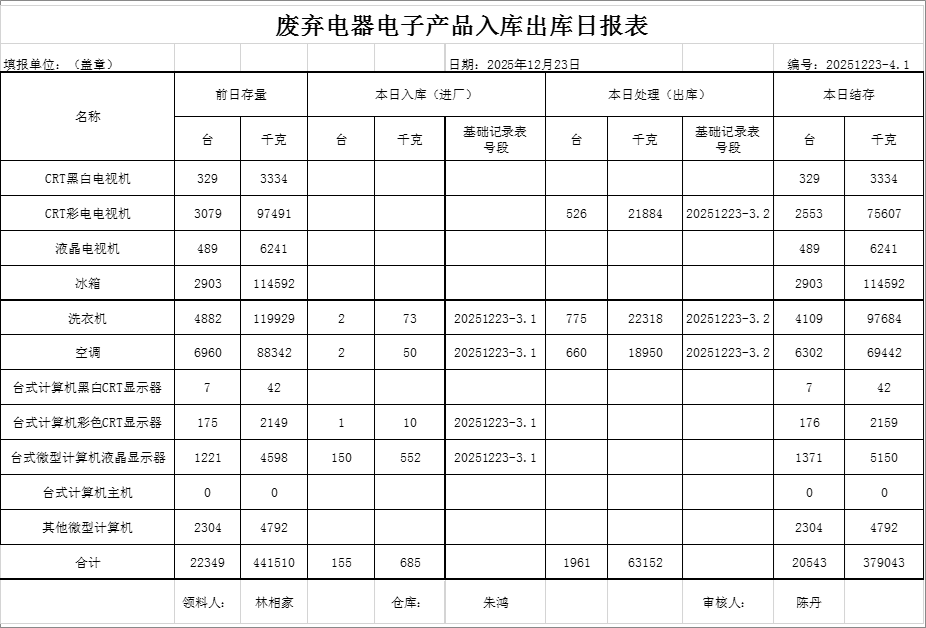 2025.12.23回收拆解統(tǒng)計(jì)表