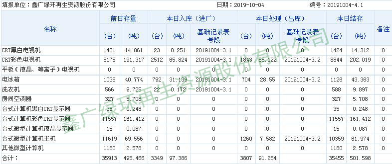 2019.10.04回收拆解統(tǒng)計表