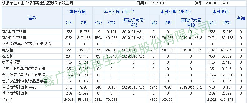 2019.10.11回收拆解統計表