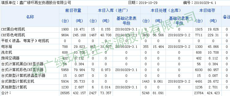 2019.10.29回收拆解統計表