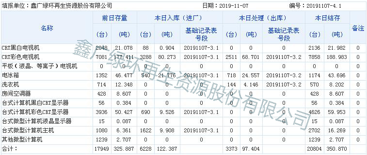 2019.11.06回收拆解統(tǒng)計(jì)表