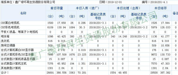 2019.12.01回收拆解統計表