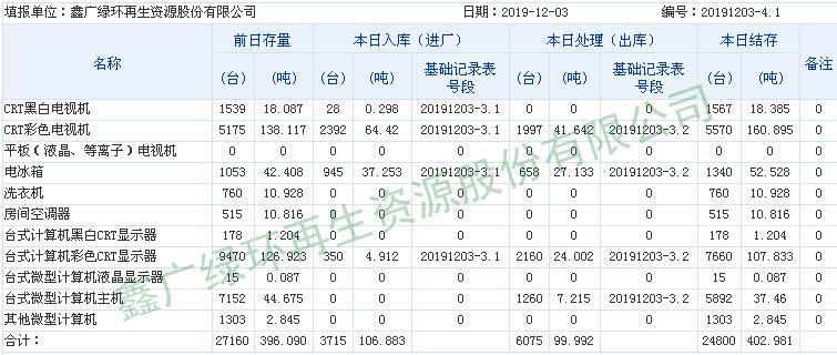 2019.12.02回收拆解統(tǒng)計(jì)表