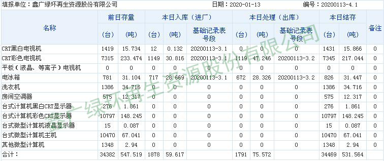 2020.01.13回收拆解統(tǒng)計(jì)表