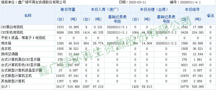 2020.03.11回收拆解統計表