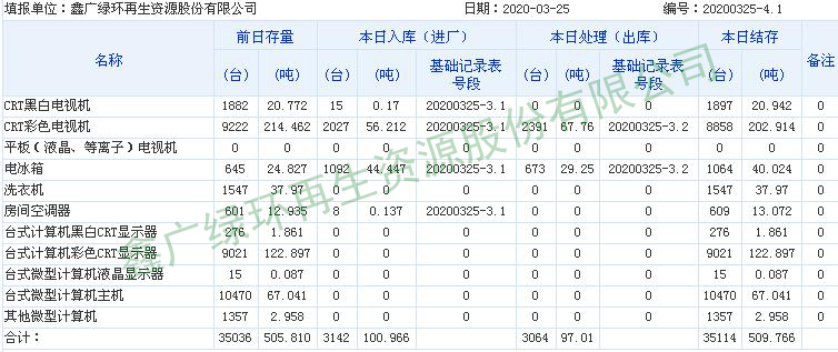 2020.03.25回收拆解統(tǒng)計(jì)表