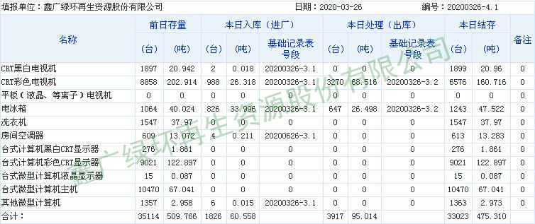 2020.03.26回收拆解統(tǒng)計(jì)表