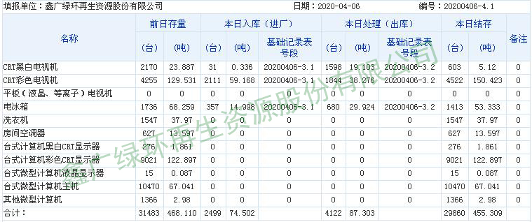 2020.04.06回收拆解統(tǒng)計(jì)表