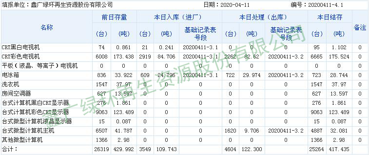 2020.04.11回收拆解統(tǒng)計表