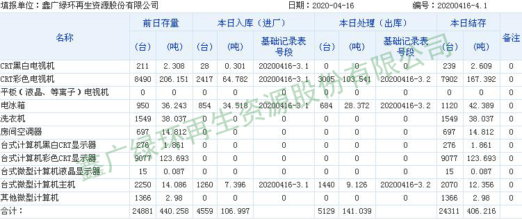 2020.04.16回收拆解統(tǒng)計(jì)表