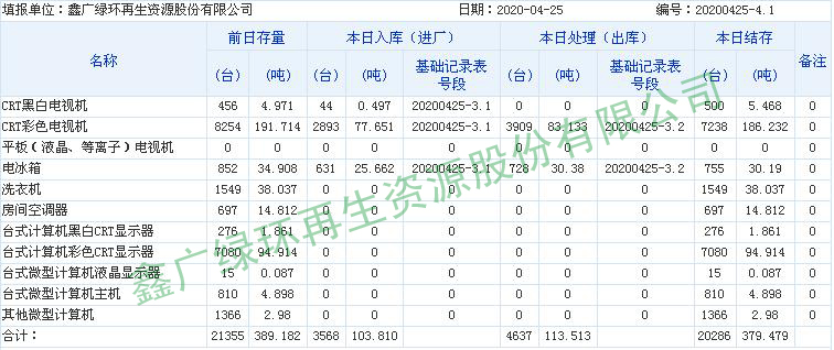 2020.04.25回收拆解統計表
