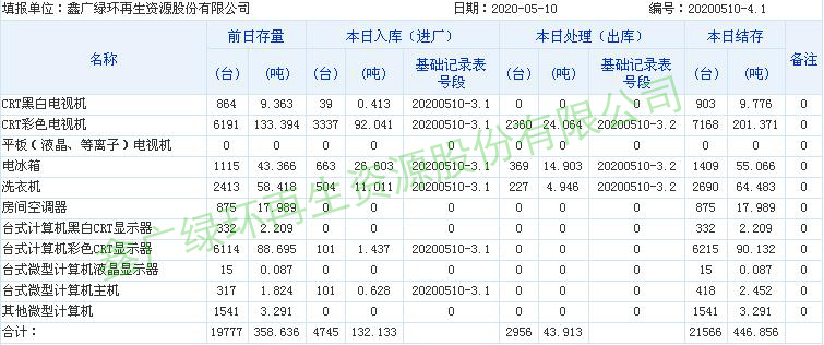 2020.05.10回收拆解統計表