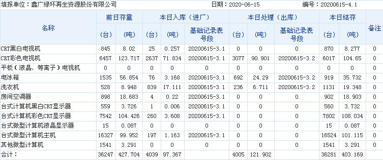 2020.06.16回收拆解統(tǒng)計(jì)表