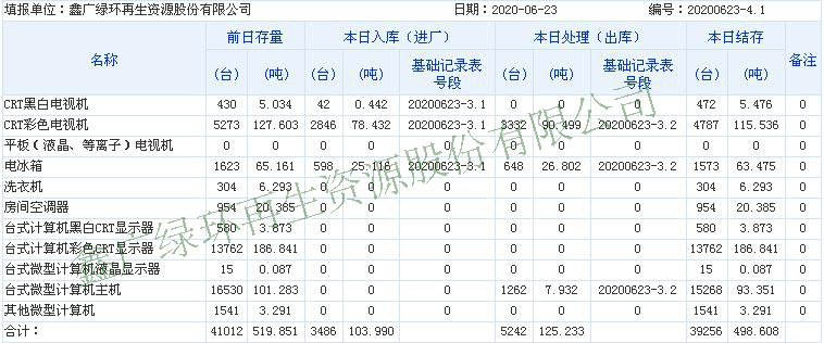 2020.06.23回收拆解統(tǒng)計(jì)表