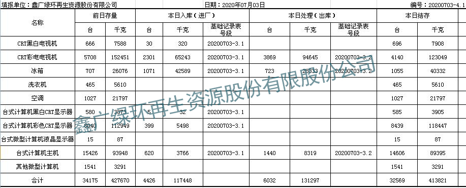 2020.07.03回收拆解統(tǒng)計(jì)表