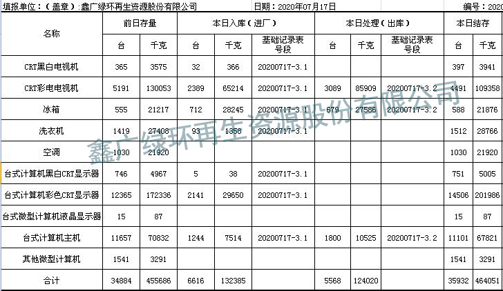 2020.07.17回收拆解統(tǒng)計表