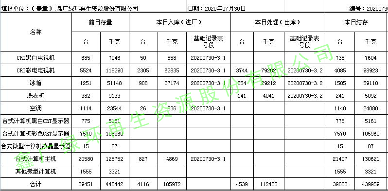 2020.07.30回收拆解統計表