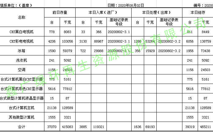 2020.08.03回收拆解統計表