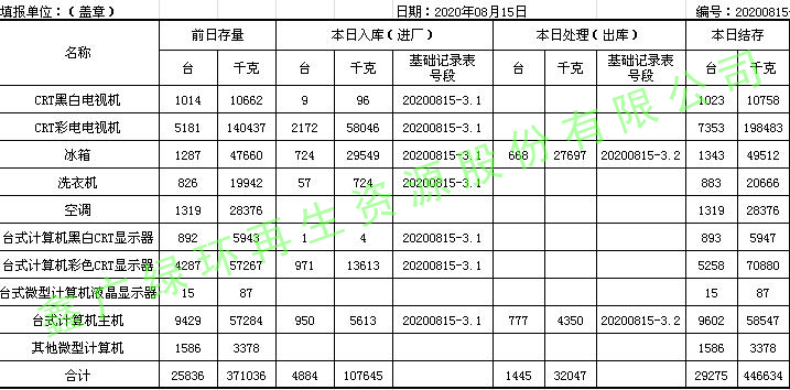 2020.08.15回收拆解統計表