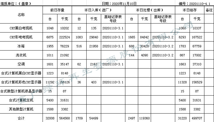 2020.11.10回收拆解統計表
