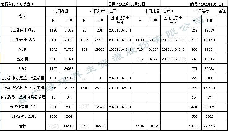 2020.11.16回收拆解統計表