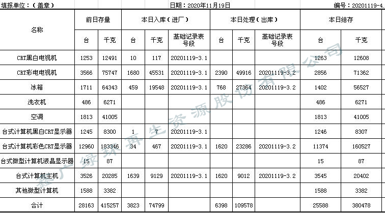 2020.11.19回收拆解統計表