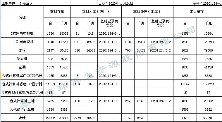 2020.11.24回收拆解統計表