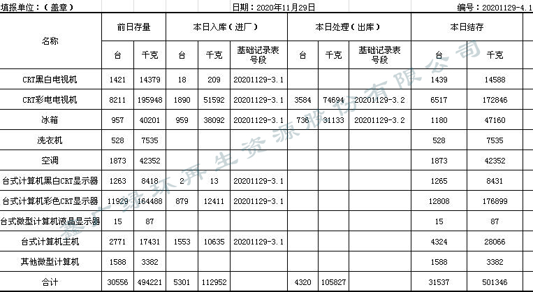 2020.11.29回收拆解統計表