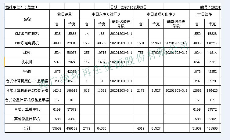 2020.12.03回收拆解統(tǒng)計表