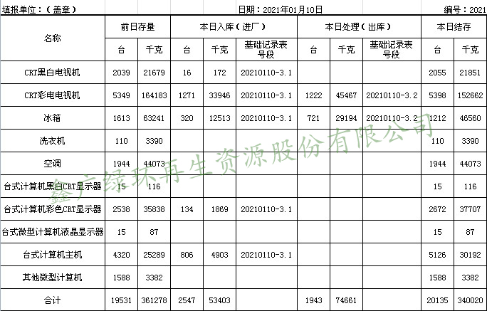 2021.01.10回收拆解統(tǒng)計表