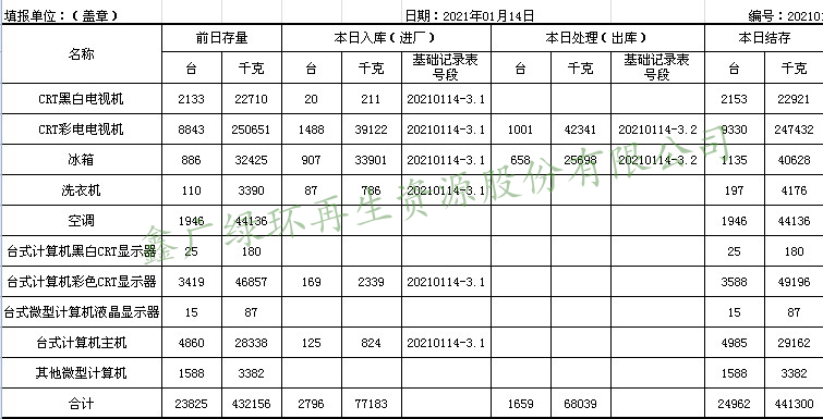 2021.01.14回收拆解統(tǒng)計(jì)表
