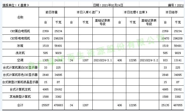2021.02.24回收拆解統(tǒng)計(jì)表