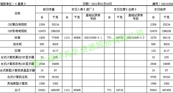 2021.03.09回收拆解統(tǒng)計(jì)表