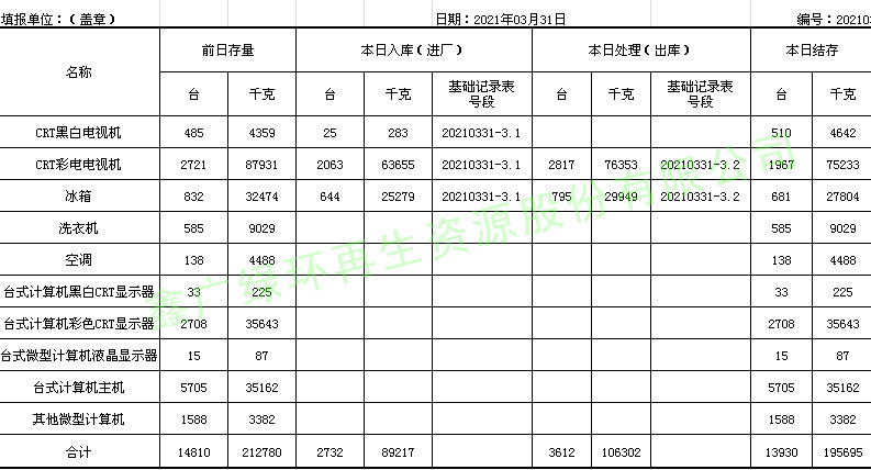 2021.03.31回收拆解統(tǒng)計表