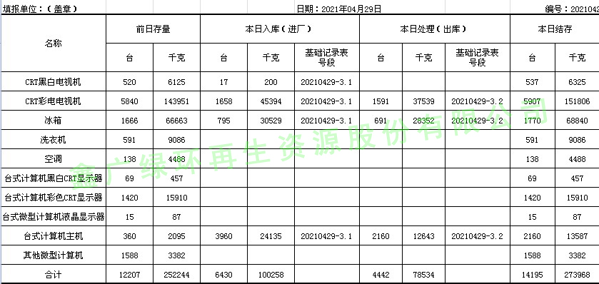 2021.04.29回收拆解統(tǒng)計(jì)表