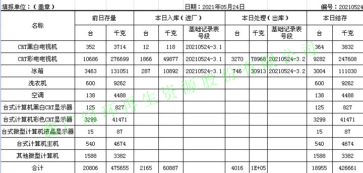 2021.05.24回收拆解統(tǒng)計(jì)表