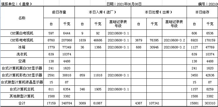 2021.06.08回收拆解統(tǒng)計(jì)表