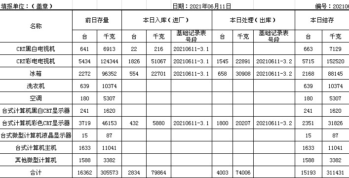 2021.06.11回收拆解統(tǒng)計(jì)表