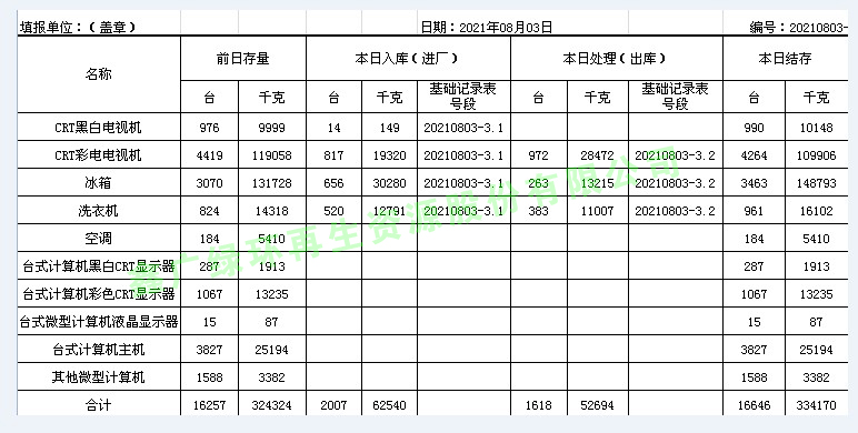 2021.08.03回收拆解統(tǒng)計(jì)表
