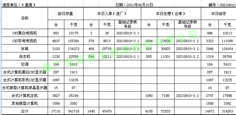 2021.08.11回收拆解統(tǒng)計(jì)表