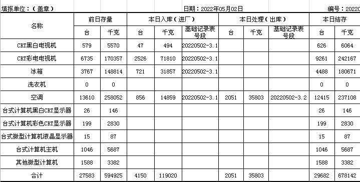 2022.05.02回收拆解統(tǒng)計(jì)表