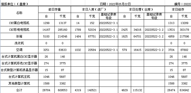 2022.05.23回收拆解統(tǒng)計表